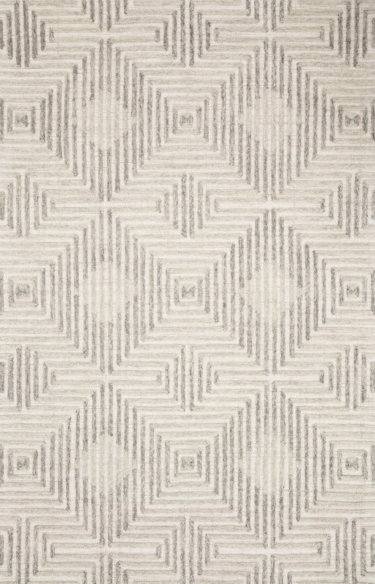 La colección Ehren, confeccionada a mano por hábiles artesanos en la India, tiene una paleta neutra que se compensa con patrones geométricos fuertes pero con textura que crean una alfombra sutil y duradera hecha de pelo 100 % lana.