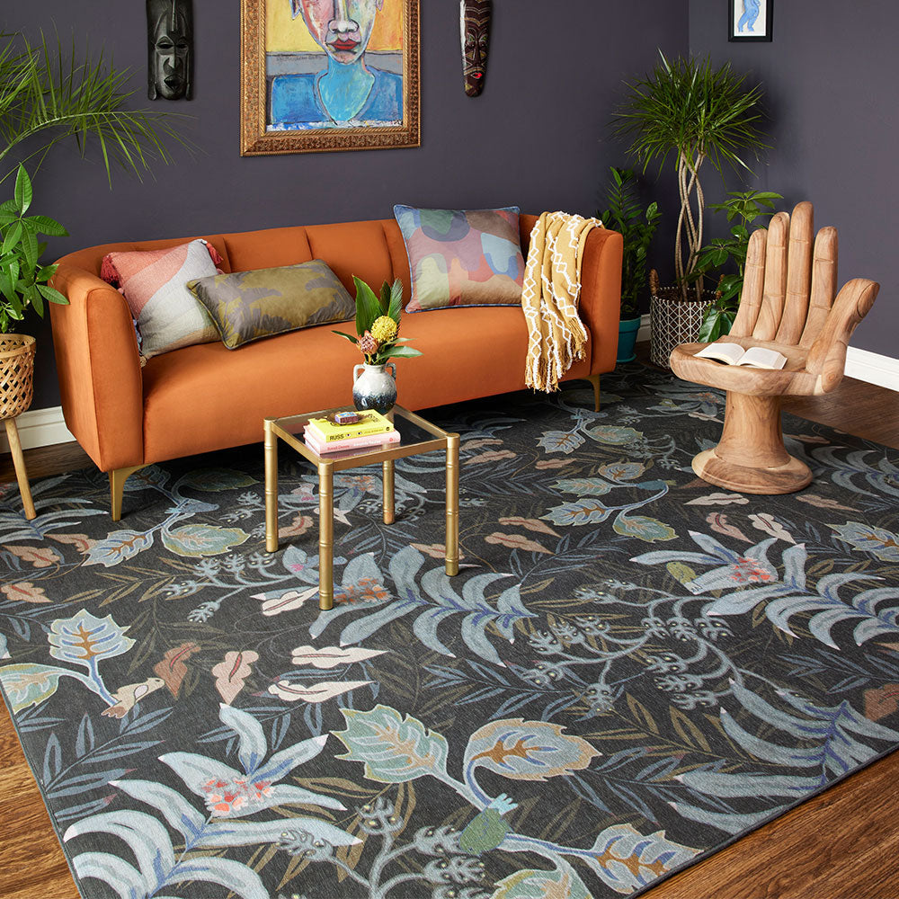 Agregue personalidad a una sala de estar, un patio y una cocina por igual con esta colección de motivos tropicales ilustrativos. Creada en colaboración con Justina Blakeney, la colección Pisolino está confeccionada con telar mecánico de 100 % poliéster en colores vibrantes.