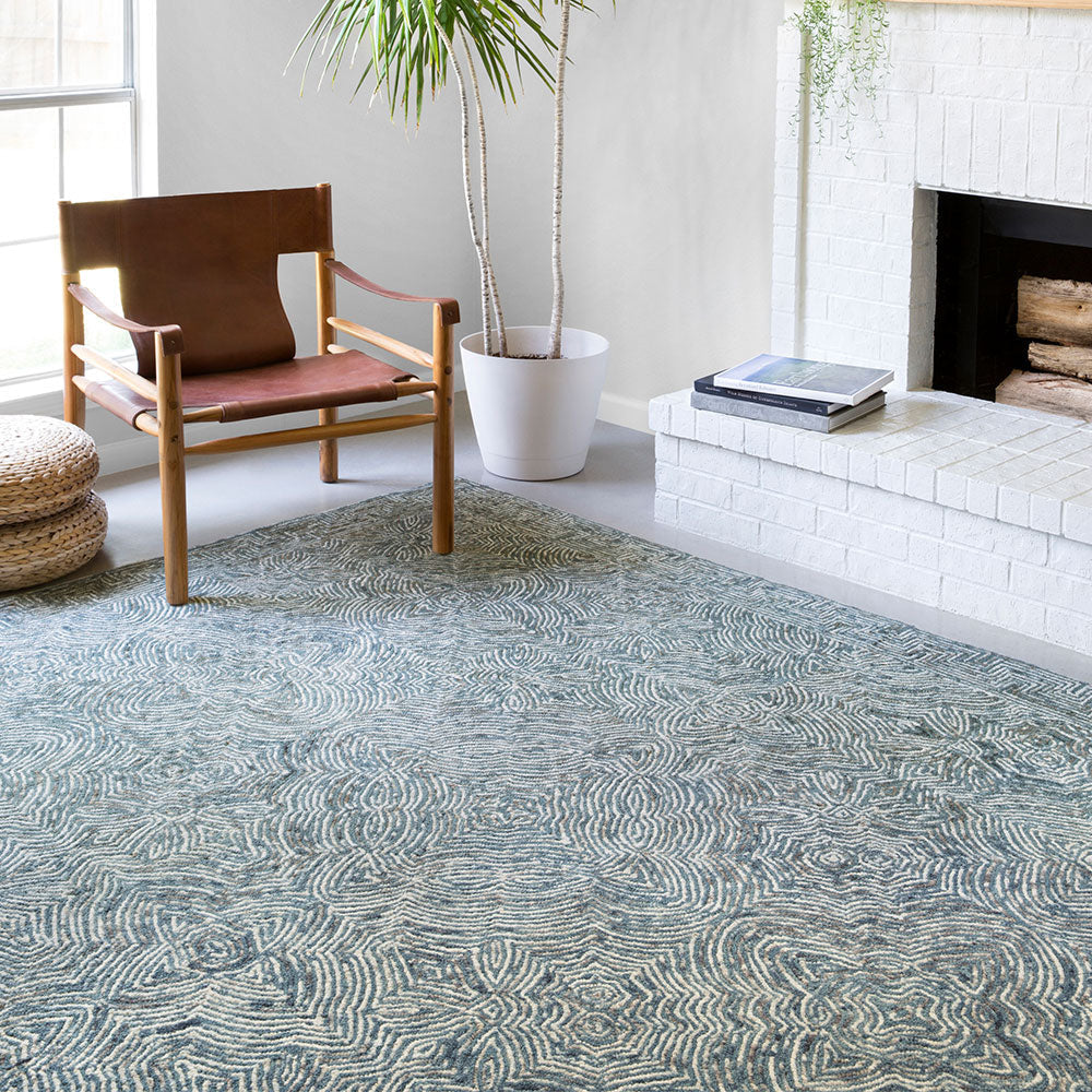 La colección Ziva está tejida a mano con 100 % lana por artesanos de la India. Una mezcla de nudos de hilo abigarrados entretejidos entre fibras neutras contrastantes crea diseños hermosamente lineales y contemporáneos.